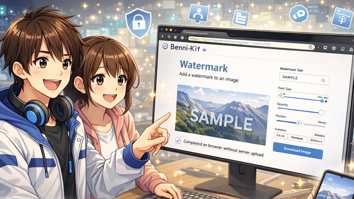 【完全無料】サーバー送信なしで安全に写真へウォーターマーク(透かし)を入れる方法